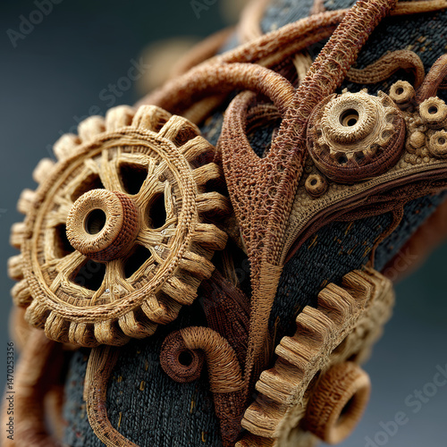 © Дмитрий Сирота, Obraz premium Entangled wood and brass gear network
