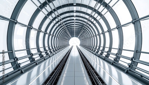 Fototapeta premium Entering Modern Tunnel with Railroad Tracks Perspective