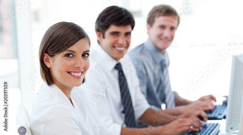 © WavebreakMediaMicro, Fototapeta premium Enthusiastic business people working at computers