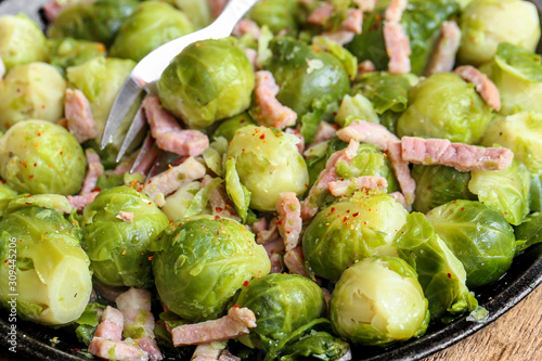 Fototapeta premium entrée : choux de bruxelles et lardons cuits