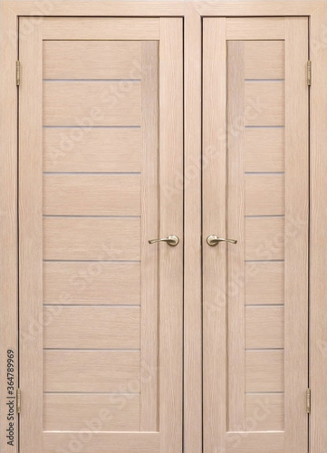 Fototapeta premium Entrance double door (Interior wooden door) isolated on white background