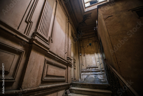 © Mulderphoto, Obraz premium Entrance hall in old abandoned mansion