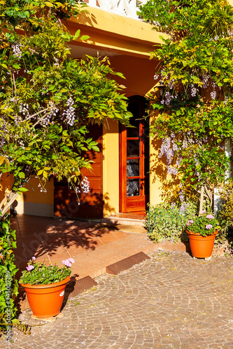 © lorenzobovi, Naklejka premium entrance of a luxury house with plants