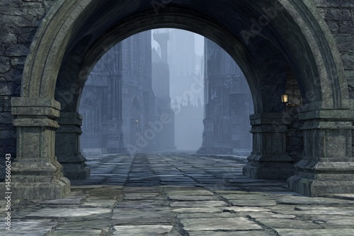 Naklejka premium Entrance to a deserted land of ruined cities in a fantastical surreal 3d...