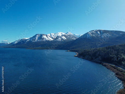 Naklejka premium Entre nieve y árboles: Paisajes idílicos de la Ruta de los 7 Lagos