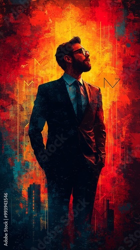 © ggamyuii, Obraz premium Entrepreneur Standing on Rising Success Graph