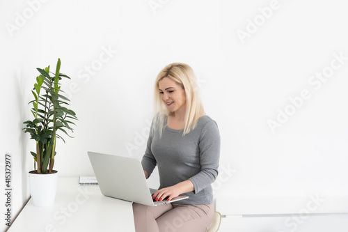 © Angelov, Naklejka premium Entrepreneur woman working with a laptop sitting at home.