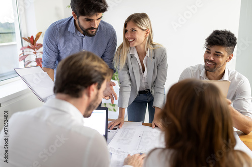 © NDABCREATIVITY, Obraz premium Entrepreneurs and business people working together in office