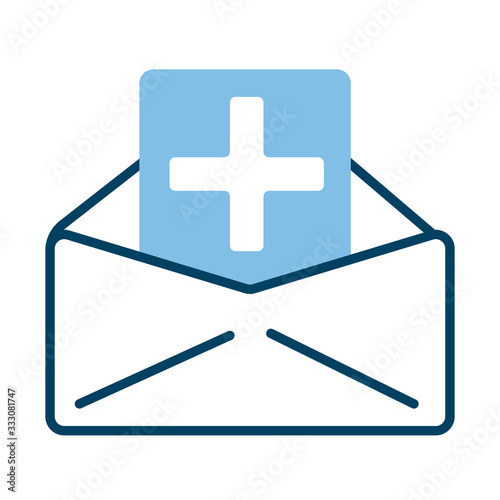 Fototapeta premium envelope with medical cross symbol half line style