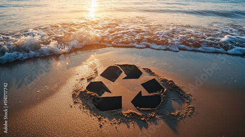 © ntpscl, Obraz premium Environmental Awareness Beach Sand Art Coastal Eye-Level Sustainability Concept