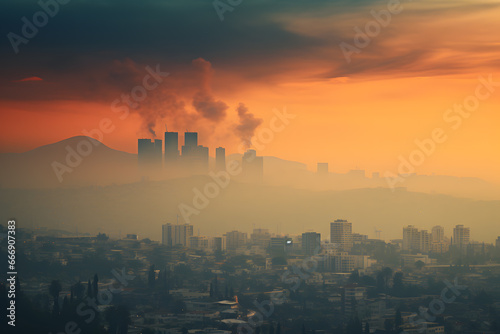 Fototapeta premium Environmental Impact, Urban Air Pollution in Landscape