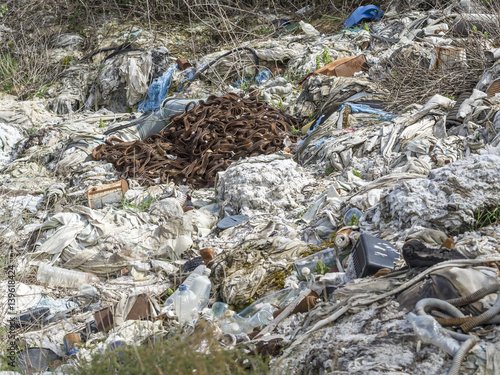 Obraz premium Environmental problem. Wastes which contaminate soils