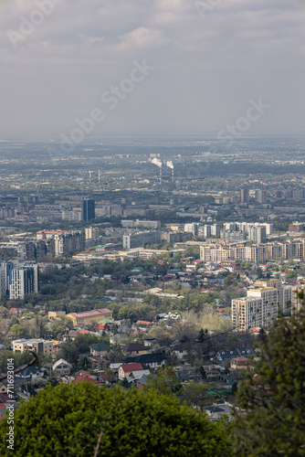 Obraz premium Environmental problems of large cities. Smog over the city of Almaty in...