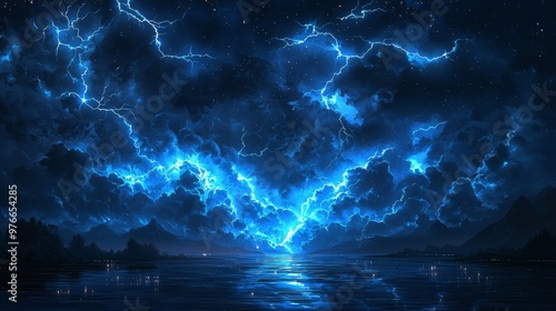 Fototapeta premium Environmental storm scene at night, lightning bolts illuminating the sky, nature's energy creating a dramatic atmosphere