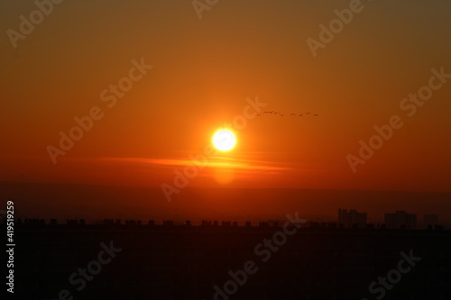 Obraz premium Envolée d'oiseau devant un couché de soleil