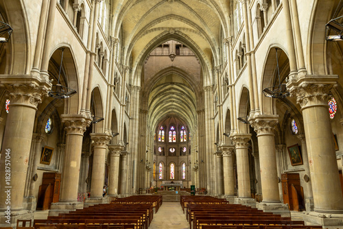 © Richard Semik, Obraz premium Epernay church interior with vaulted ceilings and pews