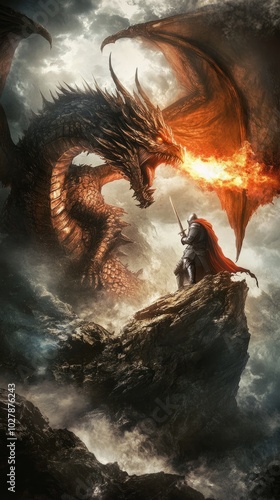 Obraz premium Epic Battle Between Knight and Dragon