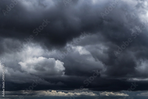 Obraz premium Epic Dramatic storm dark grey black cumulus rain clouds sky background...