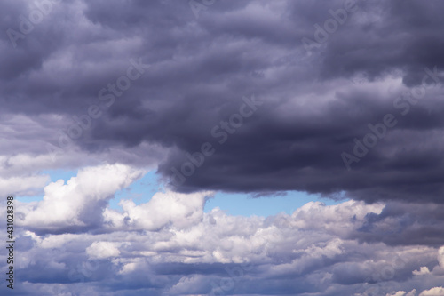 Fototapeta premium Epic dramatic Storm sky, dark grey and white cumulus clouds on blue sky...