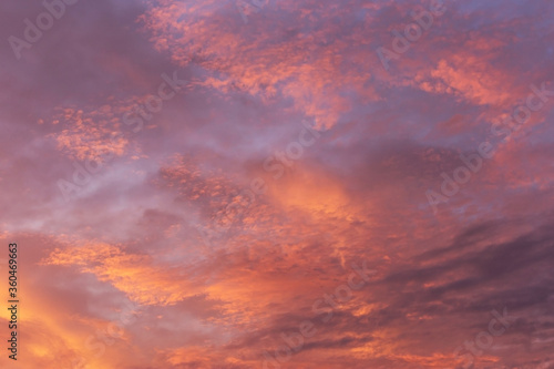 Fototapeta premium Epic dramatic sunrise, sunset pink violet orange sky with clouds background texture