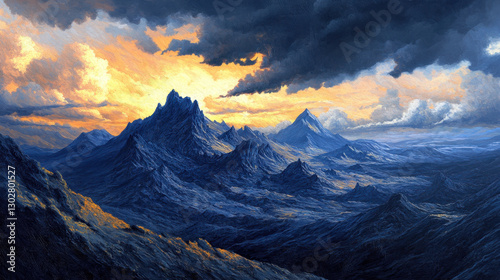 Obraz premium Epic Mountain Sunset: Dramatic Nature Scenery with Vibrant Clouds and...
