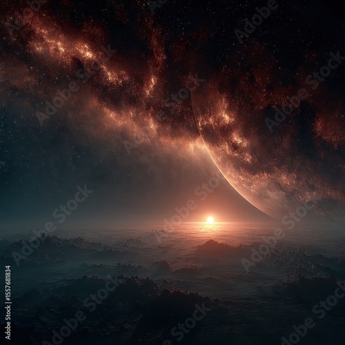 © Rupa, Naklejka premium Epic space landscape with planet, nebula, and cosmic vista