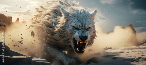 © Ania, Naklejka premium epic white wolf battle wild, ai generative