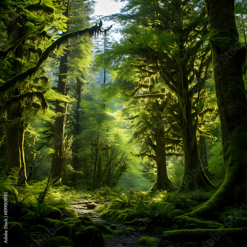 Naklejka premium Epic Wilderness - A Serene Journey into a Majestic, Ancient Forest