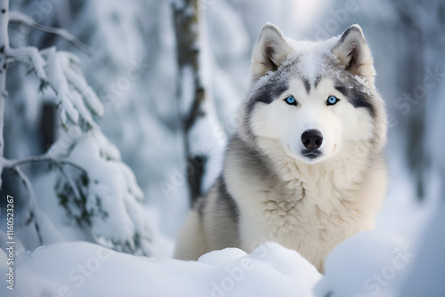 Naklejka premium Epic Wilderness Capture: Mesmerizing Eskimo Husky Braving the Arctic...