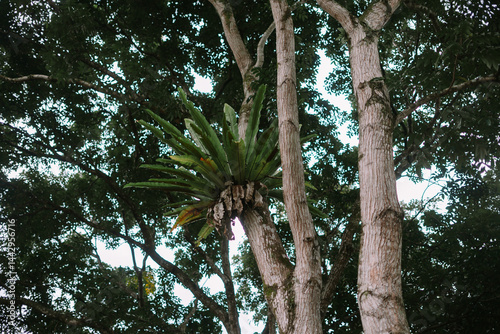 Fototapeta premium Epiphyte Bird's Nest Fern Growing on Tree Branch in Tropical Forest