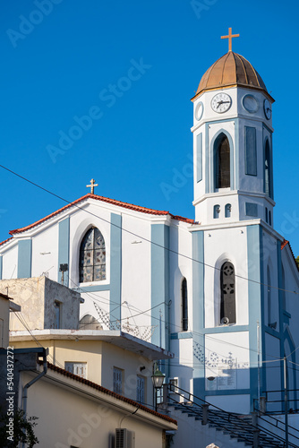 © CoinUp, Fototapeta premium Epitalio, Greece - August 17 2022: Saint Charalampos church and bell tower