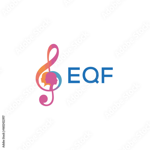 Fototapeta premium EQF “Creative music logo with human silhouettes and treble clef in gradient colors, EQF Later Logo, modern artistic design isolated on white background”