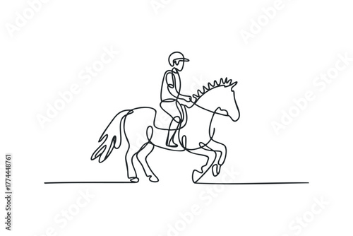 Fototapeta premium Equestrian Rider in Single Line Drawing Style