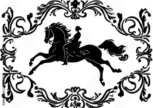 Obraz premium Equestrian Silhouette, Ornate Frame