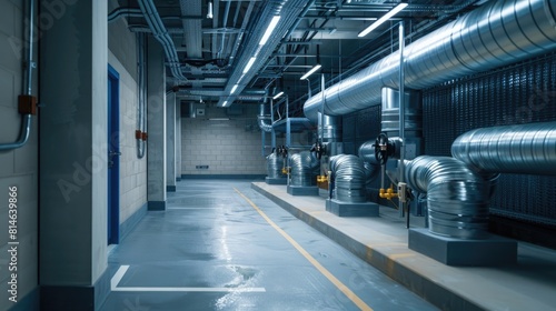 Fototapeta premium Equipment, cables and piping as found inside of a modern industrial power plant