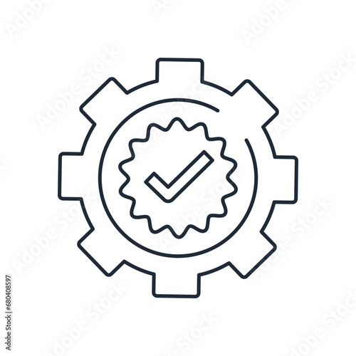 © vektor67, Obraz premium Equipment marked with a seal of high technical characteristics. Vector linear illustration icon isolated on white background.