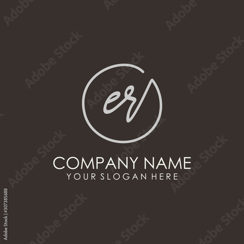 © VOKE VICTORI, Fototapeta premium ER initials signature logo. Handwritten vector logo template connected to a circle. Hand drawn Calligraphy lettering Vector illustration.