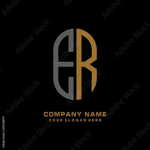 Obraz premium ER minimalist letters, with black and gold, white, black background logos