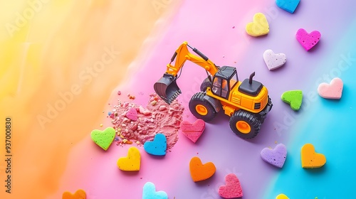 © Emma, Obraz premium Erasers backhoe loading colorful heart isolated on colorful background