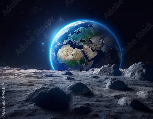 Obraz premium Erde aus Sicht des Mondes – stille Beobachtung