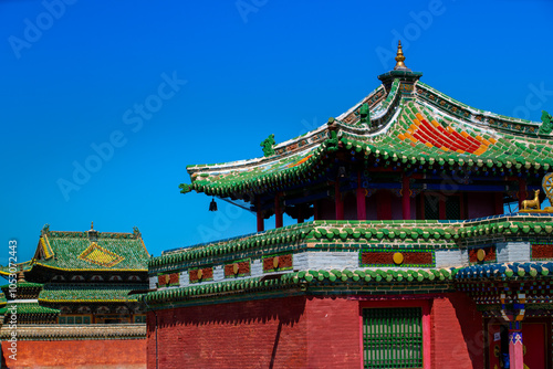 © Somkiat, Obraz premium Erdene Zuu Monastery, earliest surviving Buddhist monastery in Mongolia, affiliated with Gelug sect of Tibetan Buddhism, part of Orkhon Valley Cultural Landscape, UNESCO, Ovorkhangai, Karakorum