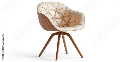 © Suhainee, Naklejka premium Ergonomic designer chair with unique quilted pattern and wooden legs, perfect for modern office or home decor. Stylish and comfortable seating option