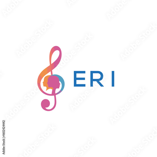Fototapeta premium ERI “Creative music logo with human silhouettes and treble clef in gradient colors, ERI Later Logo, modern artistic design isolated on white background”