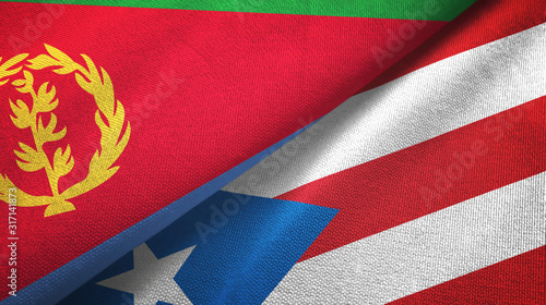 © Aleks Taurus, Fototapeta premium Eritrea and Puerto Rico two flags textile cloth, fabric texture