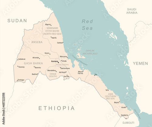 © gt29, Fototapeta premium Eritrea - detailed map with administrative divisions country.