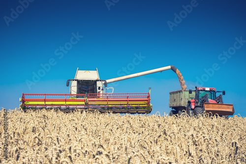 Fototapeta premium Ernte mit Mähdrescher und Traktor