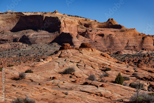 © Robert, Fototapeta premium Eroded Red Rock Formations in Coyote Buttes, Paria Canyon-Vermilion Cliffs Wilderness, Arizona, USA – Scenic Southwest Desert Landscape Under Clear Sky