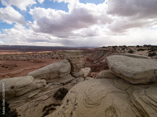 © tloventures, Fototapeta premium Eroded Swirling Rock Formations with a Valley of Orange Rock in the Background