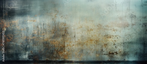 © Ilgun, Obraz premium Eroded Urban Texture: Weathered Dark Wall with Rusty Metal Plate Background