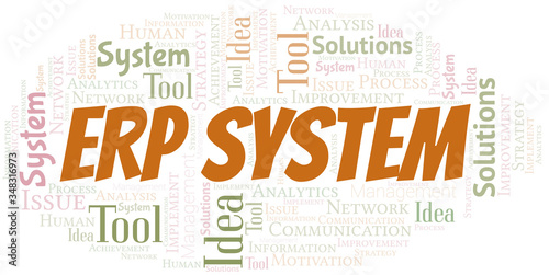 © sharafmaksumov, Obraz premium Erp System typography vector word cloud.